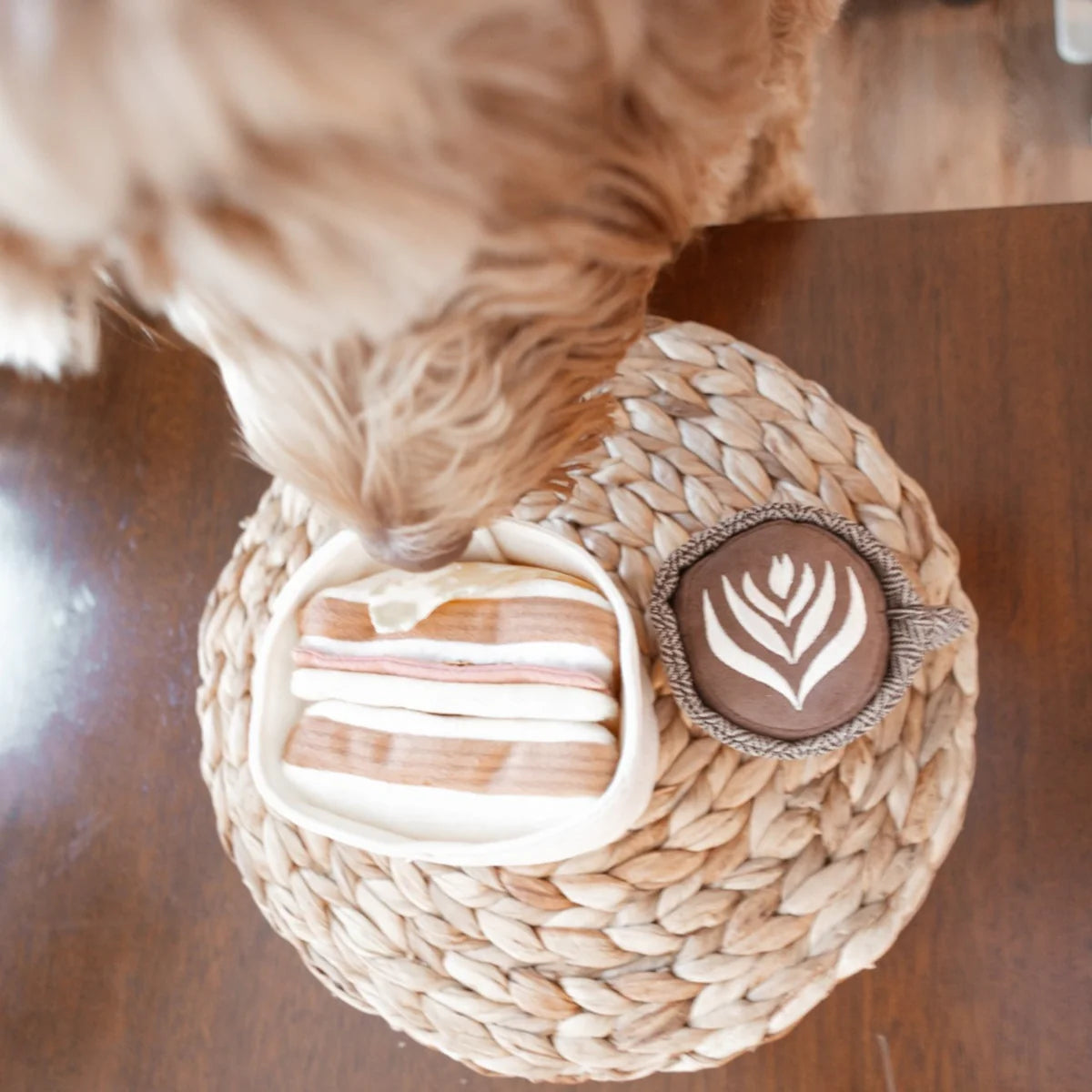 サンドイッチの間にはおやつを隠すためのポケットがついておりノーズワークをしながら楽しく遊べます。