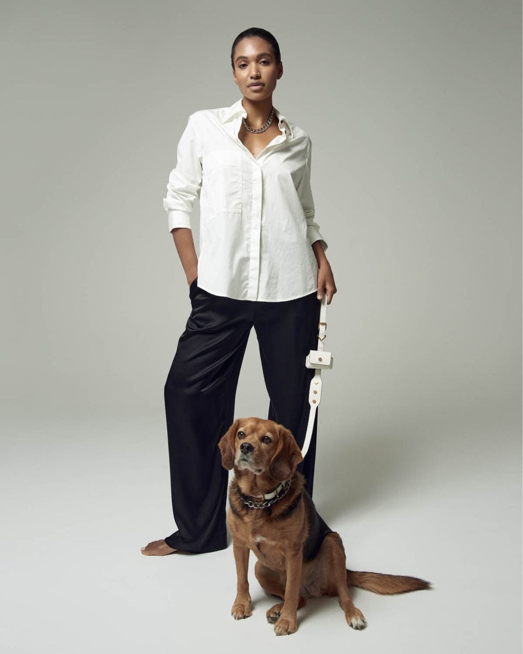 開口部はマグネットスナップボタン式で、背面にはマッシュルームタブが付いており、お揃いのリードCLASSIQUE LEADやバッグに簡単に取り付けることができます。