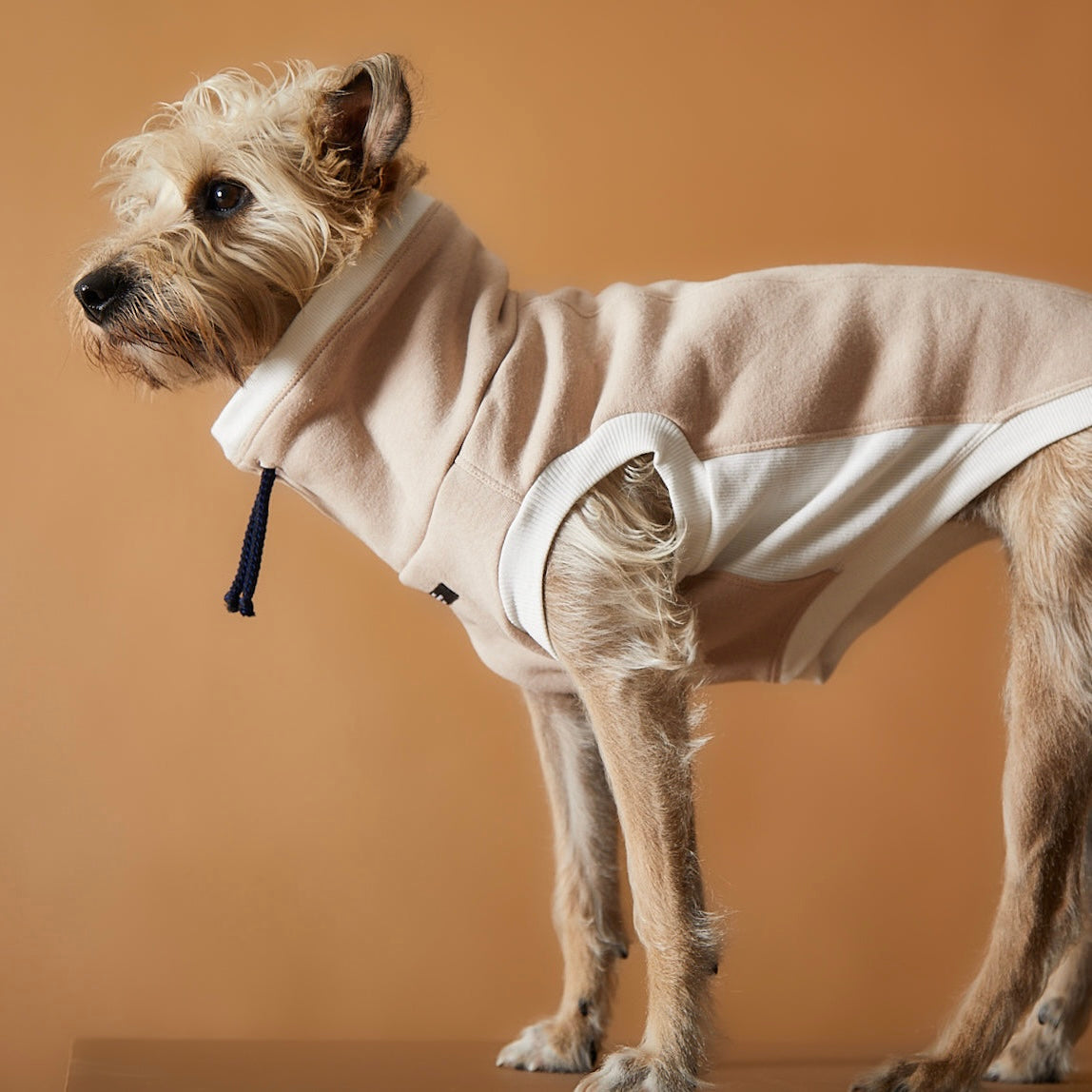 ノースリーブなので足の短い犬や、洋服の苦手な犬にもチャレンジしやすい一枚です。